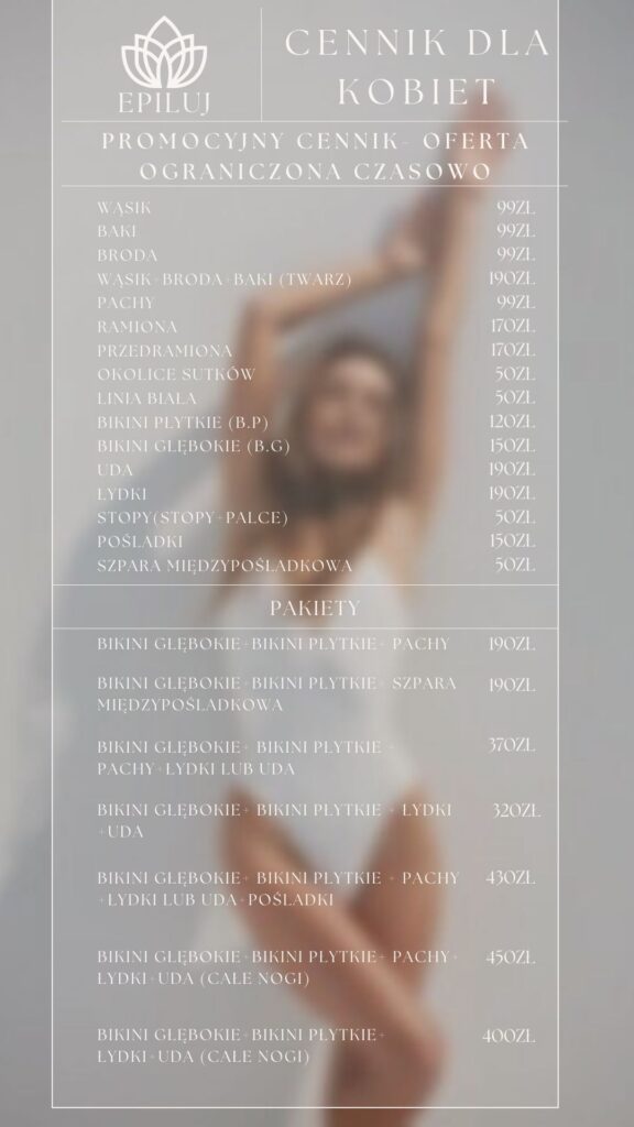 Promocje 1. Wybierz dwie strefy; np całe nogi+ bikini i otrzymaj -10% na zabieg 2. Dla każdego nowego klienta -5%